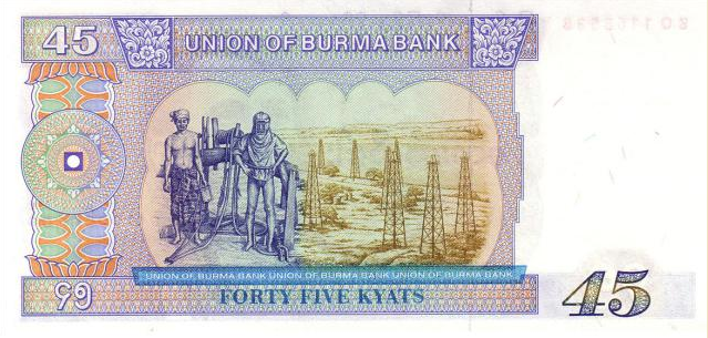 缅甸国家银行在1944年发行1,5,10和100缅甸元(kyat)的纸币,在1945年进一步发行100缅元的纸币。