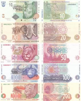 | 纸币 | R 10, R 20, R 50, R 100, R 200 |